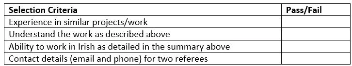 Comhchoiste Ghaeltacht Uíbh Ráthaigh are seeking to encourage an experienced Project Coordinator through this process. If no applicant is deemed suitable, the Comhchoiste reserves the right to use other recruitment methods.